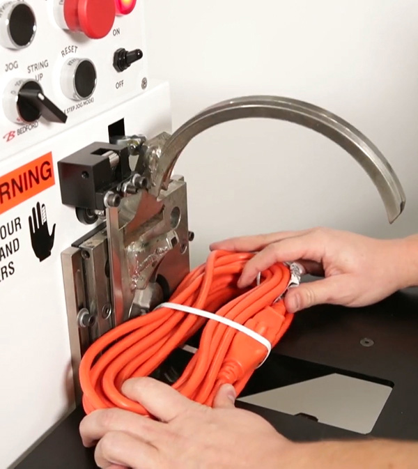 Quickly apply tie to secure your hoses, electrical cords, cables, flowers, or other bundled items. Durable and easy to use, this bundle tying machine applies Bedford Twist Tie up to 45 cycles per minute. Three ring sizes available.